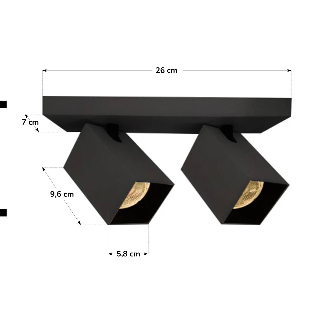 Industriële mat zwarte plafondlamp met twee spots - Boy